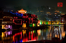 | 晚上 | 可自由欣賞美麗的【鳳凰夜景】:沿沱江兩岸漫步,欣賞沙灣吊角樓,細(xì)細(xì)品味古城久遠(yuǎn)的歷史和 塵封心底的記憶;古香古色、極富濃郁苗家民族風(fēng)韻的吊腳樓坐落于兩岸,細(xì)腳伶仃的木柱立于河中,拖起古城中一段美麗的往事。在這里您可以欣賞到鳳凰古城全貌探訪古城風(fēng)情尋覓古樸醉美湘西發(fā)現(xiàn)苗家銀匠之代代相傳的銀飾制作技。 |