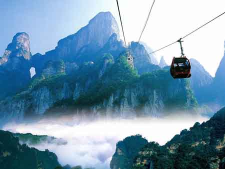 | 下午 | 午餐后游覽“擴(kuò)大的盆景,縮小的仙境”有峰林之王稱號的---天子山景區(qū) (仙女散花、御筆峰、天子閣、云青巖等景點),賀龍公園,十大元帥之一的——賀龍銅像,下山游玩十里畫廊景區(qū)(三姐妹峰、采藥老人、全家福、食指峰、駝駱峰等),乘坐旅游巴士大約50分鐘的車程返回市區(qū),車游“千年古戰(zhàn)場”百丈峽出景區(qū):峽谷因有高近百丈的石壁直插云霄,不敢仰視,故而得名。返回張家界市,天氣晴朗還可車觀“武陵之魂”巍峨天門山、天門洞。 |